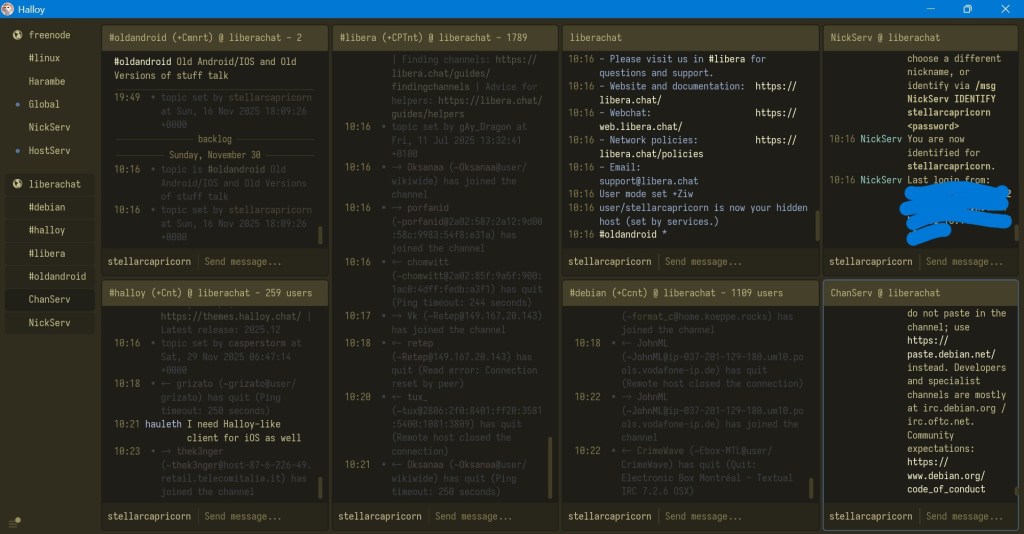 Basically, to be able to use IRC, you of course need a IRC client, I used Halloy for desktop, and Revolution IRC on my 2 phones: